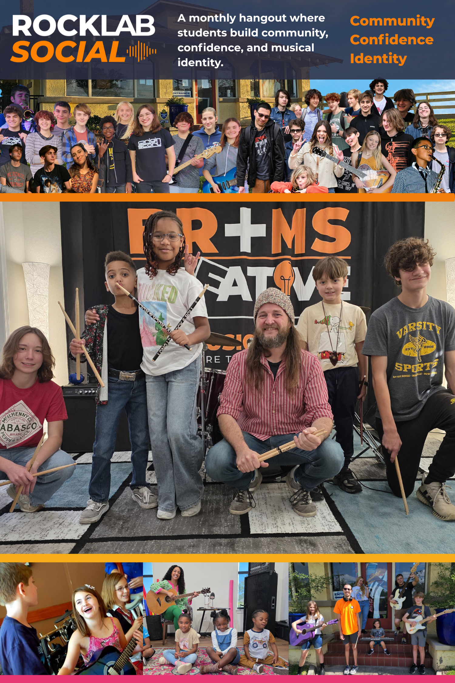 RockLab Social gives students more room to connect, experiment, collaborate, and make music with other young musicians outside of the normal lesson format. A teacher will be on site to guide, encourage, and help students stay moving in a productive direction.