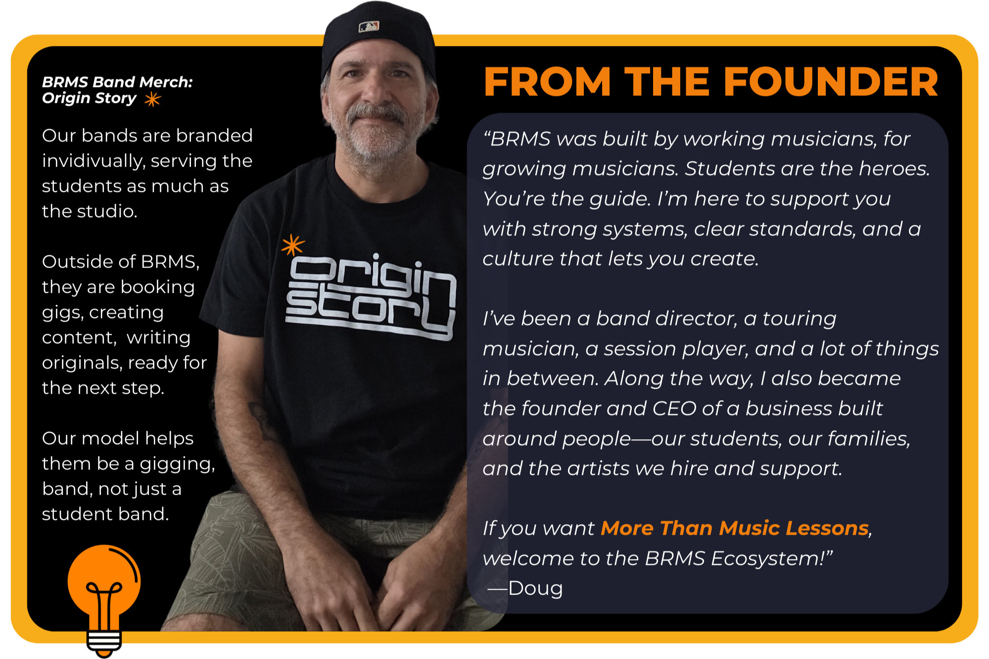 BRMS is a student-first studio with clear systems and healthy boundaries, built to let professional musicians mentor future gigging musicians. You’ll have clear guardrails, real support, and genuine creative influence as we design a culture where students become artists.